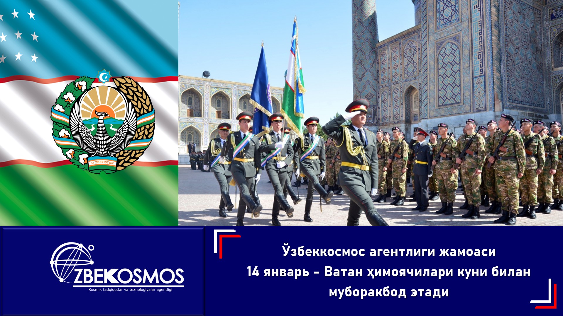 The team of the "Uzbekcosmos" Agency congratulates January 14 on the Day of Defenders of the Motherland