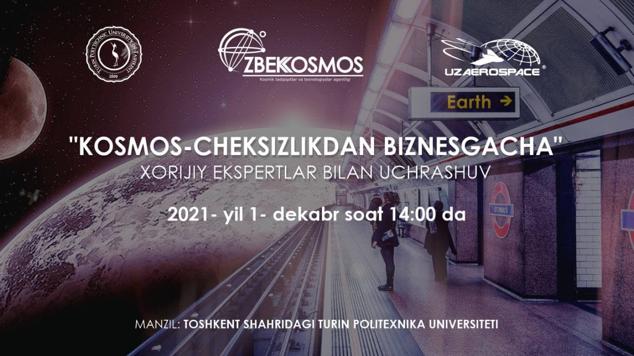 Sizni Vazirlar Mahkamasi huzuridagi Kosmik tadqiqotlar va texnologiyalar agentligi tomonidan 2021- yil 1- dekabr kuni soat 14:00da poytaxtimizdagi Toshkent shahridagi Turin politexnika universitetida tashkil etiladigan “Kosmos – cheksizlikdan biznesgacha” nomli xorijiy kosmik soha ekspertlari bilan uchrashuvga taklif etamiz.