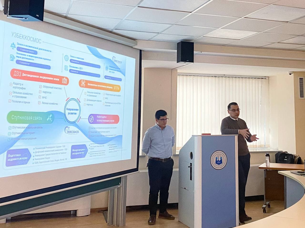 На встрече начальник Управления координации международного сотрудничества Агентства “Узбеккосмос” Исмоил Расулов, менеджер по стартап-проектам Ахрор Агзамов и ведущий специалист Отдела развития наземной космической инфраструктуры и геоматики Тохиржон Тешабоев ознакомили студентов с деятельностью Агентства и возможностями ведения инновационного бизнеса в аэрокосмической сфере в Узбекистане.