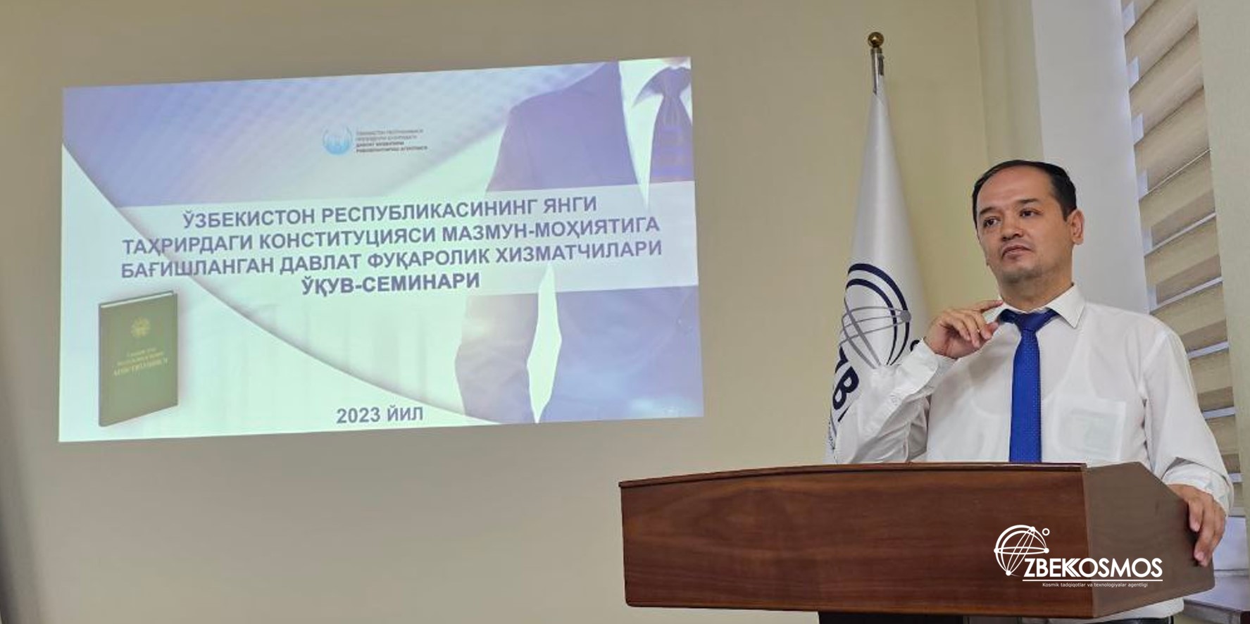 Согласно Указу Президента Республики Узбекистан от 8 мая 2023 года № УП-67 «О первоочередных мерах по реализации Конституции Республики Узбекистан в новой редакции», в сотрудничестве с Агентством развития государственной службы Республики Узбекистан в Агентстве «Узбеккосмос» 19 сентября 2023 года состоялся семинар для сотрудников Агентства на тему «Новая Конституция нового Узбекистана».