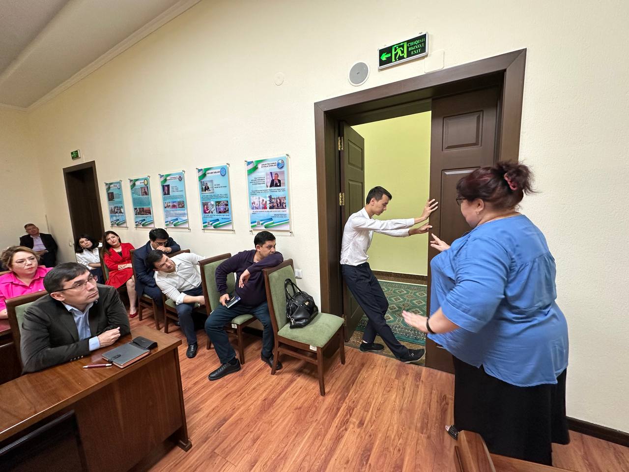 Представитель Института гражданской защиты МЧС Республики Узбекистан подробно рассказала о том, как действовать если начались подземные толчки, правилах поведения при землетрясении, а также наглядно продемонстрировала как обезопасить себя в момент толчков.